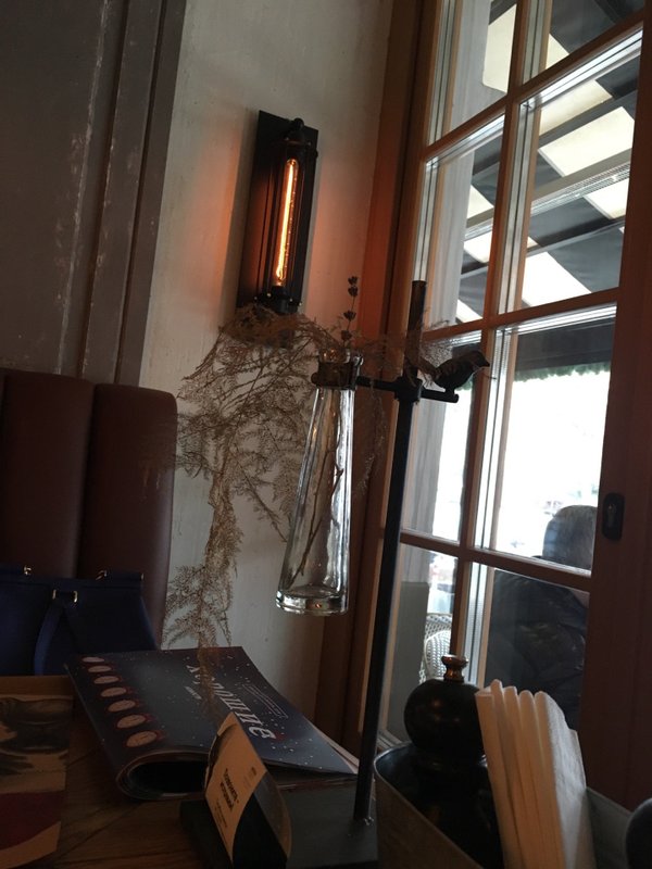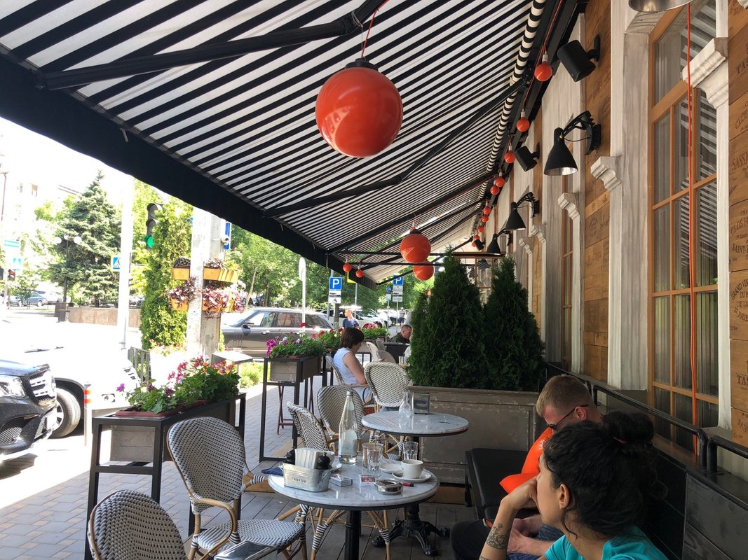 Всё было замечательно! Сидели на улице: маленькие столики, удобные диванчики и кресла, всё в осенних, ярких цветах... и вкусно, всё вкусно: паштеты, кефаль с креветками, салатик, кофе, тортик эстерхази... цены нормальные. Спасибо!!!