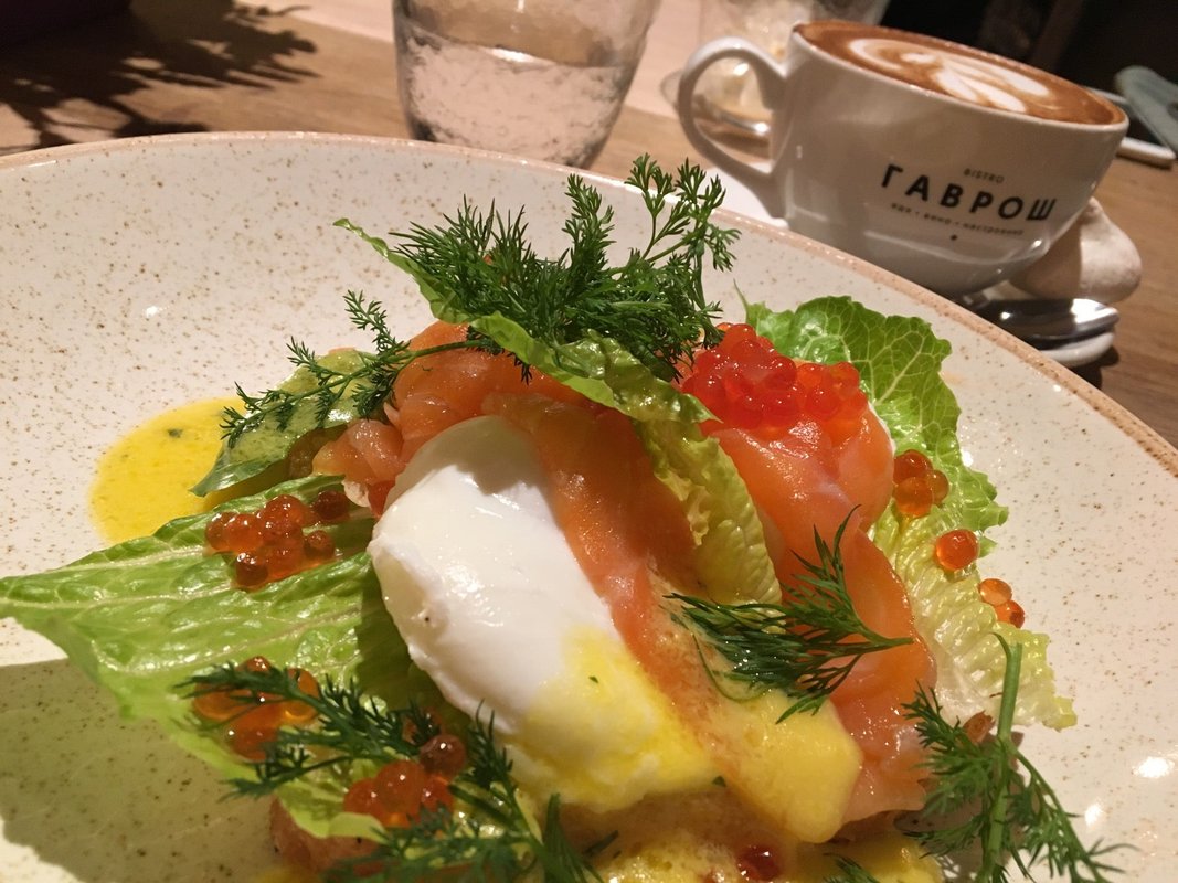 Очень вкусные завтраки, яйцо пашот с лососем , единственное место в Ростове, которое открывается в 8.00 и где можно позавтракать