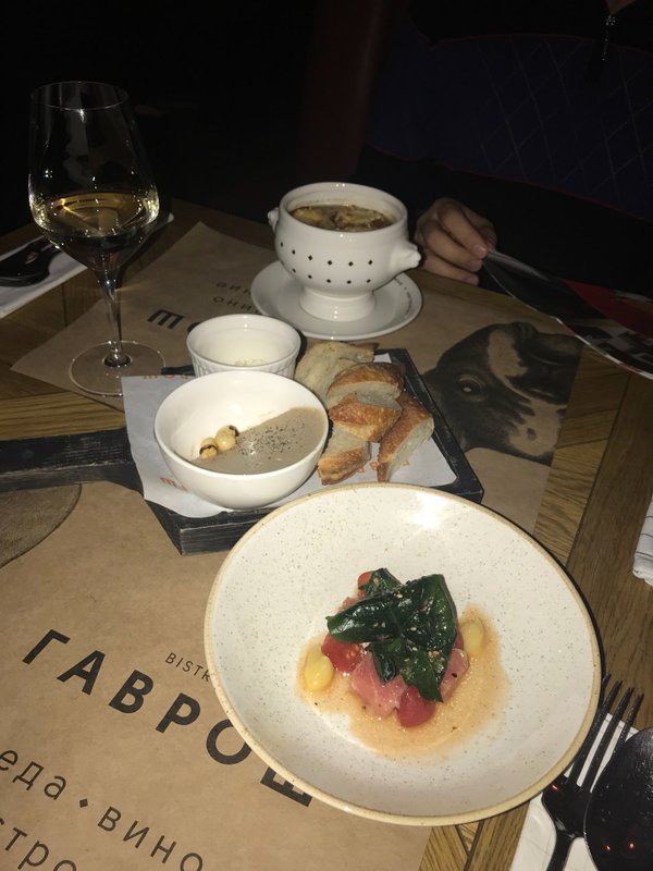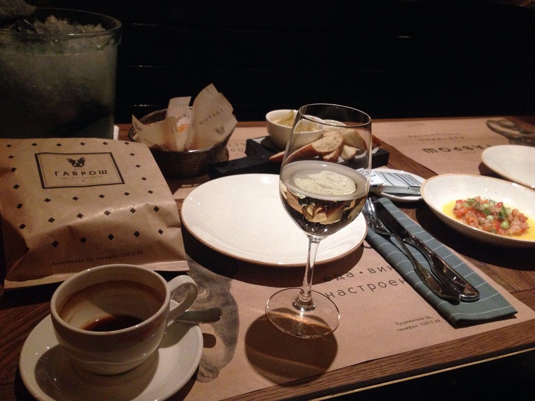 Провели в «ГАВРОШе» прекрасный вечер. Блюда отличные, атмосфера живая, персонал внимательный. Вино порекомендовали отличное. Обязательно вернусь! Очень живое место, слышно, как люди общаются и наслаждаются этим. Не люблю тишину в ресторанах, когда слышен только звук столовых приборов... P.S. выпечка действительно божественная!