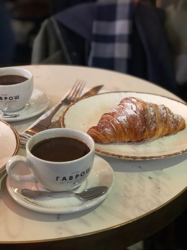 Пришла в Гаврош в надежде выпить ХОРОШЕГО кофе, но, к сожалению, американо разочаровал, без вкуса, запаха и никакой пенки, бывает получше. А вот круассан шикарный!