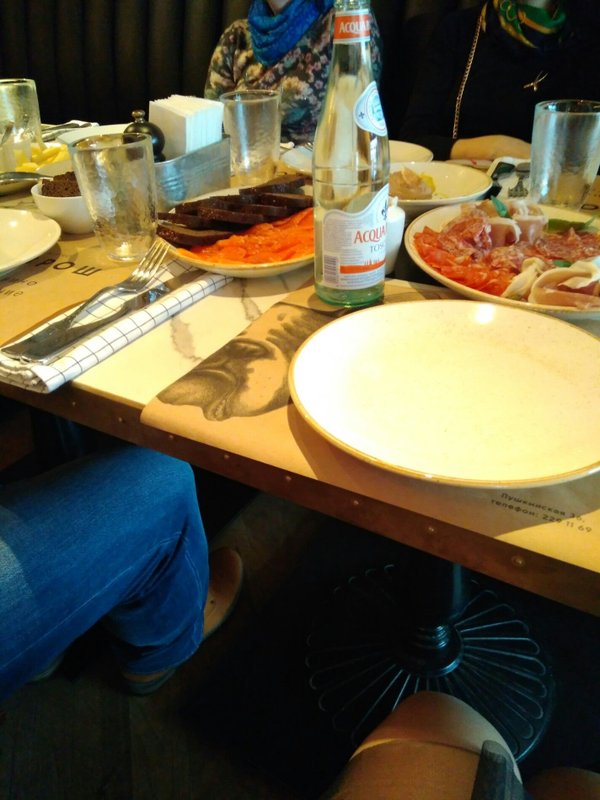 Спустя 15-20 минут, после того, как один из официантов принял уже 2й заказ у пары, сидящей за соседним от меня столиком, сотрудник всё-таки подошёл ко мне, задав вопрос о том, что я выбрала. Я пояснила, что меню мне так и не принесли. На что официант просто кинул фразу из разряда "понятно" и ушел. Вернулся минут через 5, принес что-то паре за соседним столиком, взял меню с их стола и просто, продолжая общаться с ними, отдал мне меню, даже не посмотрев на меня.