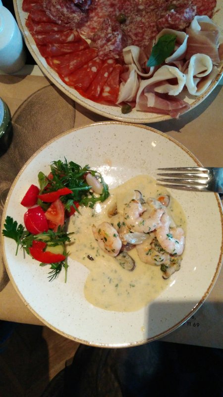 В итоге принесли чуууууть чуть салатика, креветки плавающие в каком-то жиру (фууууу). Единственное панакота да, вкусная. Ушла голодная.
