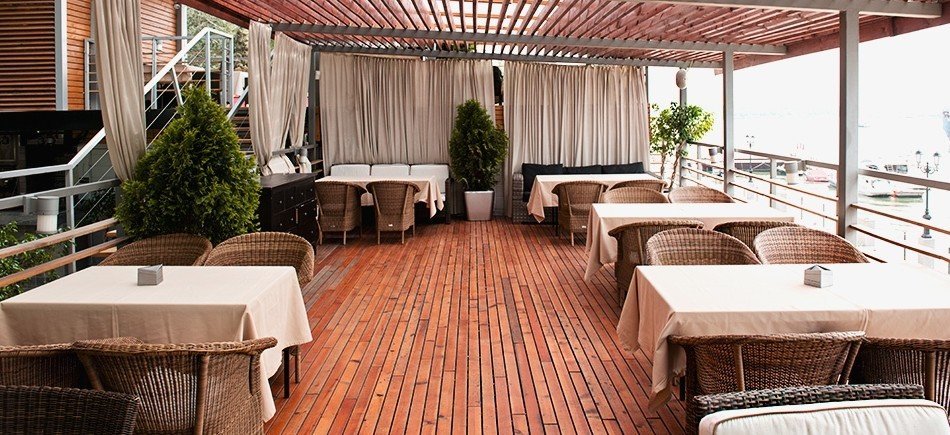 Наш ресторан находится недалеко от воды! Он славится не только своим меню и напитками - мы берём дизайном внутри и вокруг. Если вы цените стиль, равно как и вкус, посетите наш ресторан. Если за окном стоит тёплая погода, хочется больше бывать не в помещениях, а на улице. И не только чтобы прогуляться, но и пообедать или поужинать. Для этого у ресторана Пирс есть своя веранда с выходом на улицу.